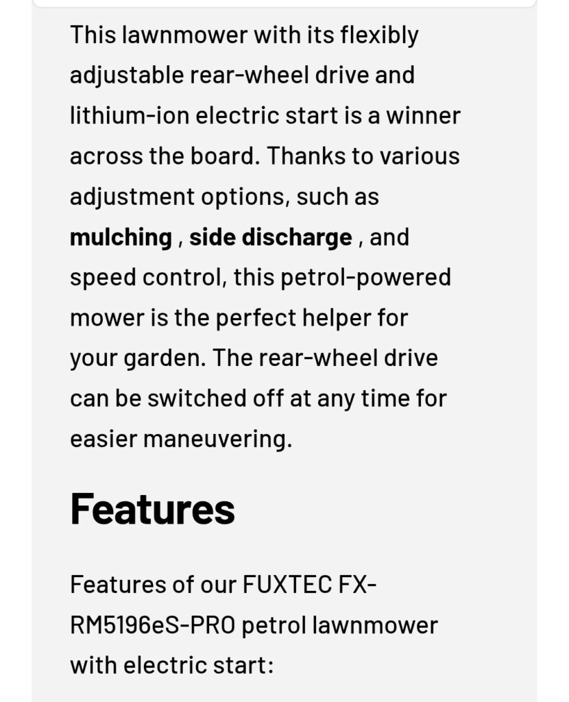 FUXTEC FX-RM5196esPRO Petrol Lawnmower with Electric Start and Adjustable Self-Propulsion Speed